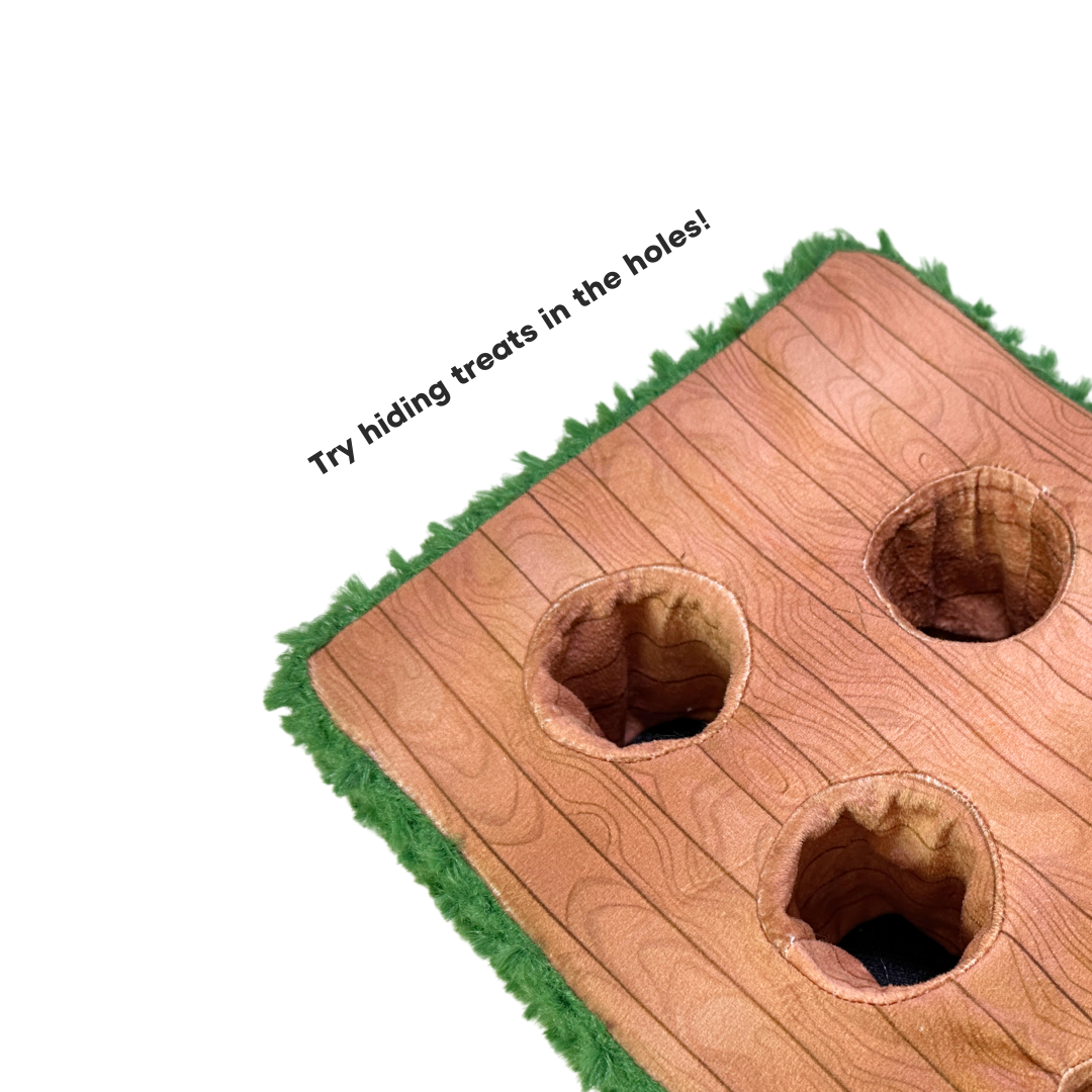 - The plush toys fit snugly into each hole, offering just the right challenge for your dog to pull them out.