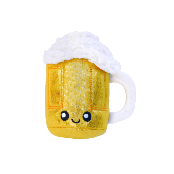 The adorable and vibrant Beer Mug contains 1 squeaker. The outside material is super soft. Perfect for dogs who love to snuggle with toys.