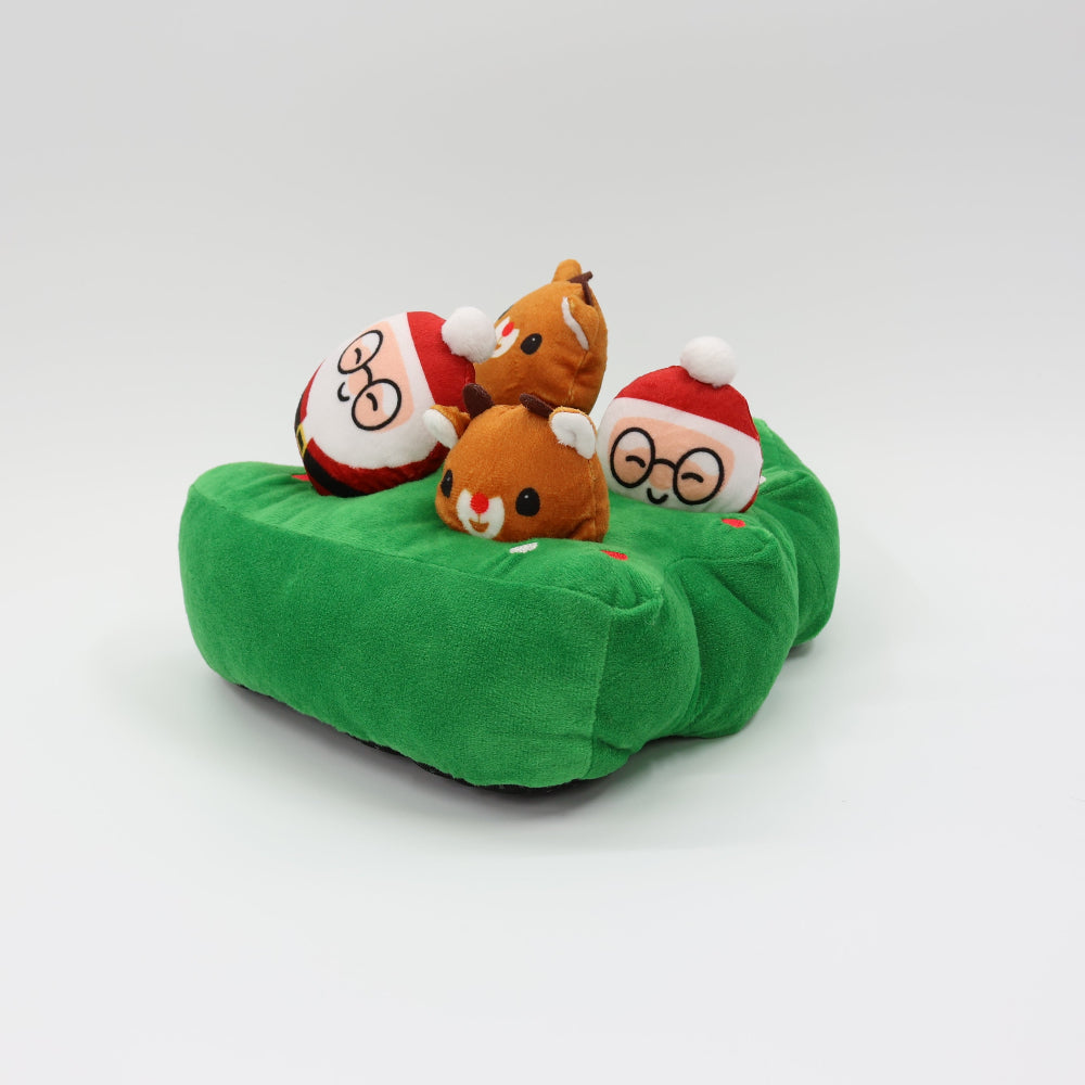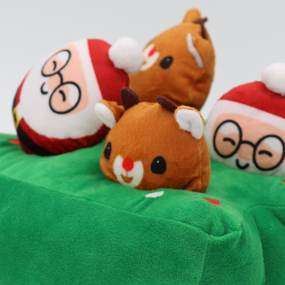 It comes with 4 squeaky plush toys—2 Santas and 2 reindeers—that dogs can pull out using their paws and mouths as they search for hidden rewards. The small squeaky characters are also perfect for fetch, making this set a festive favorite for pups who love mental stimulation and interactive play.