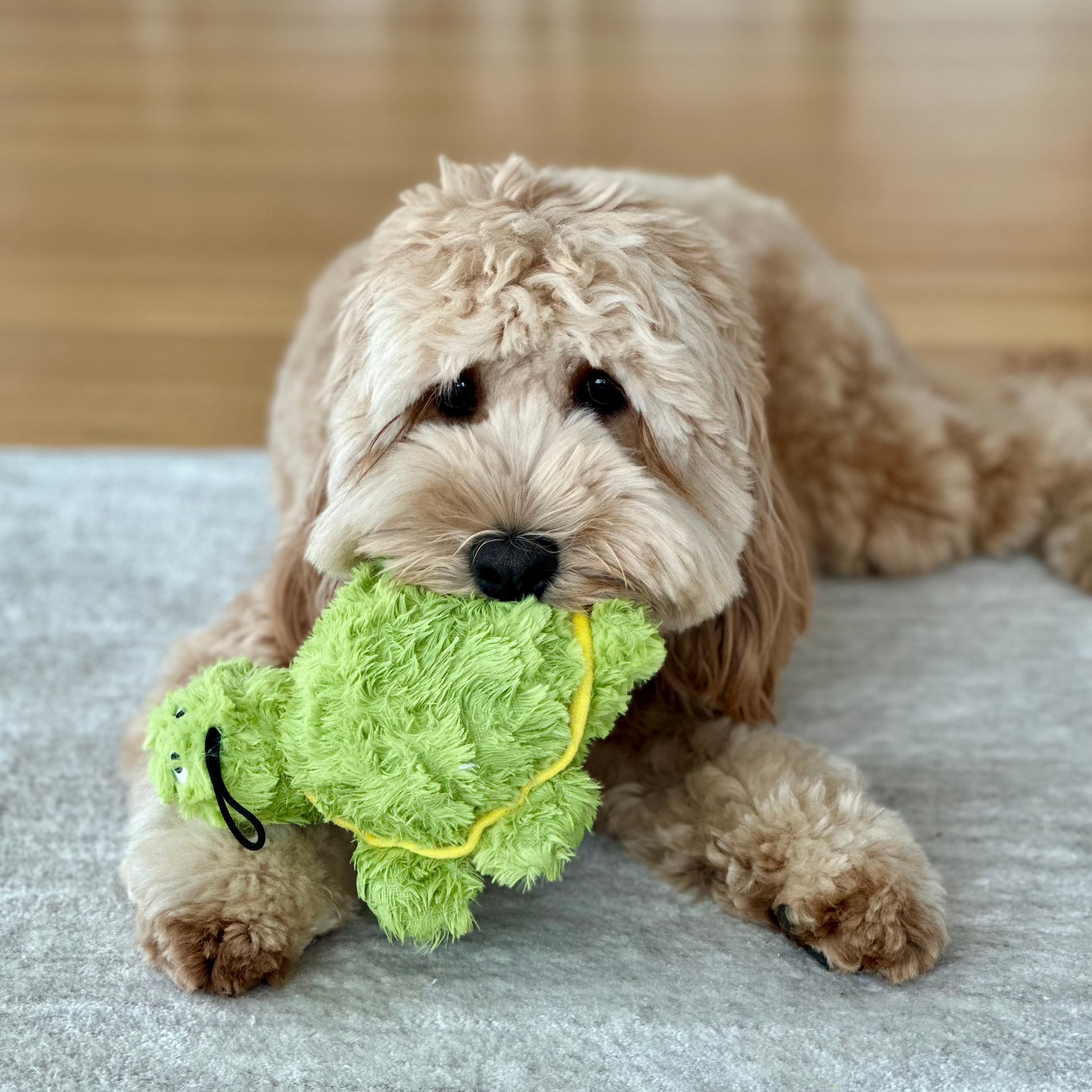 The adorable tortoise is made with ultra soft fabrics and packed with fluff! Perfect for snuggling, cuddling, and nuzzling. It will surely become your dog's favorite cuddle buddy, besides you!